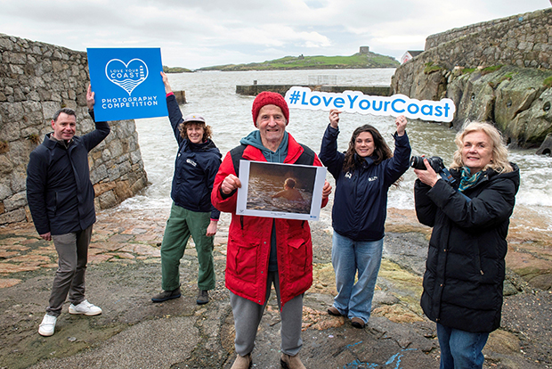 Pictured at the launch of the Clean Coasts 2026 Love Your Coast Photography Competition at Coliemore Harbour, Dalkey (L–R): Shane Dineen (Fáilte Ireland), Liane Costello (Clean Coasts), Bobby Gordon, Róisín Fitzgerald (Clean Coasts) and Maria Quigley